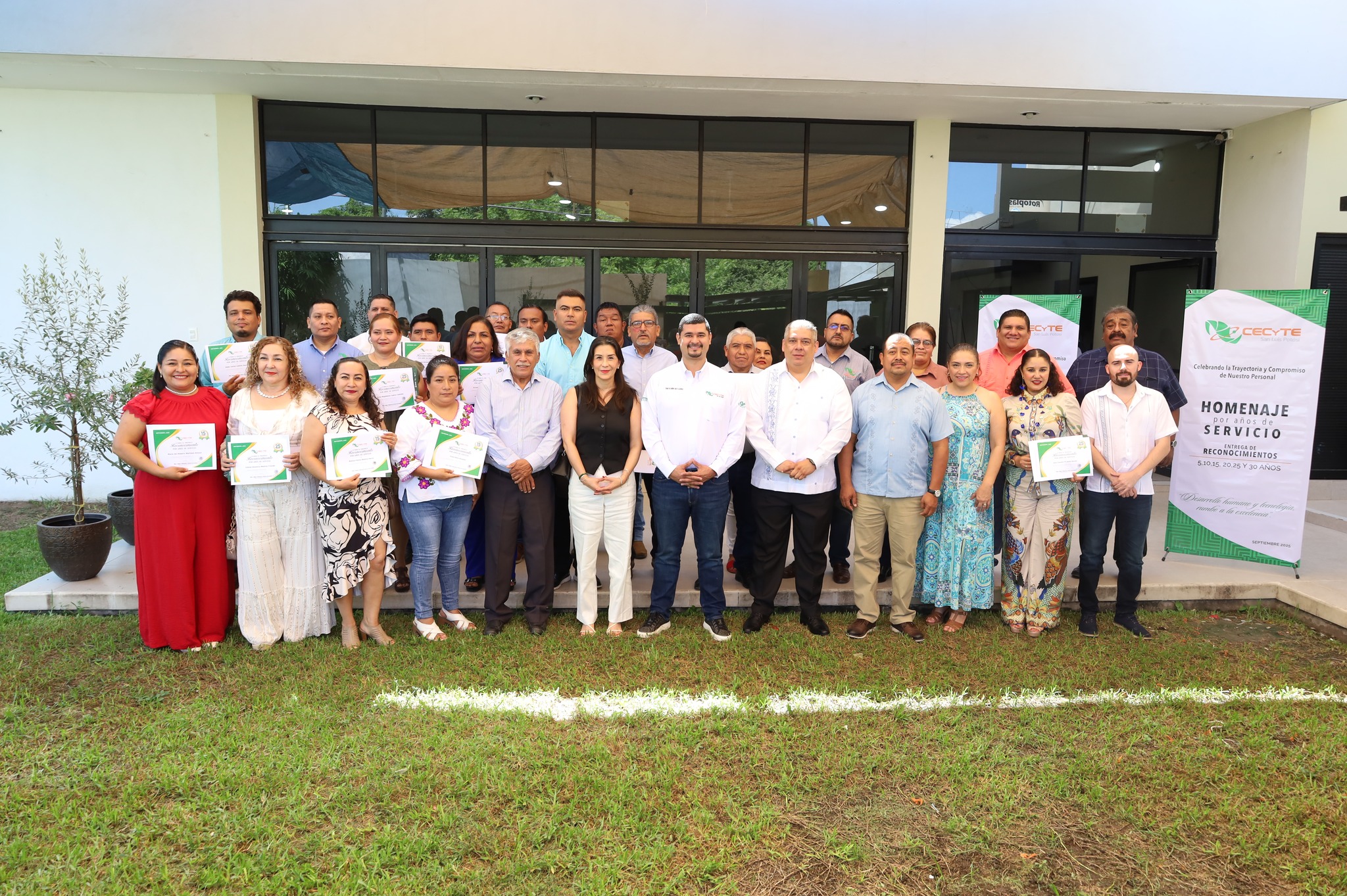 Celebramos con gran orgullo el Homenaje por Años de Servicio a nuestras compañeras y compañeros del CECyTE San Luis Potosí pertenecientes a la zona Huasteca, quienes han dedicado 5, 10, 15, 20, y 25 años de su vida profesional a la noble misión de educar y transformar vidas.