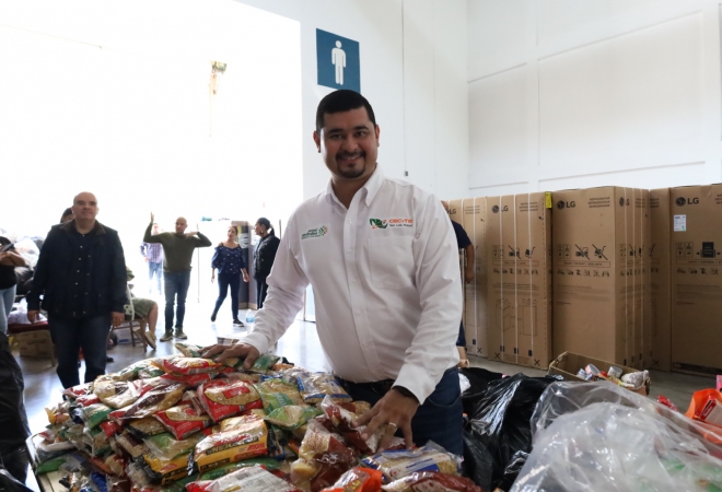 El Director General del CECyTE San Luis Potosí, Mtro. Edgar Alejandro Anaya Escobedo, encabezó la entrega de víveres y kits de limpieza a las familias afectadas por las recientes inundaciones en la Huasteca Potosina, donaciones realizadas con gran generosidad por las y los estudiantes de nuestros planteles.