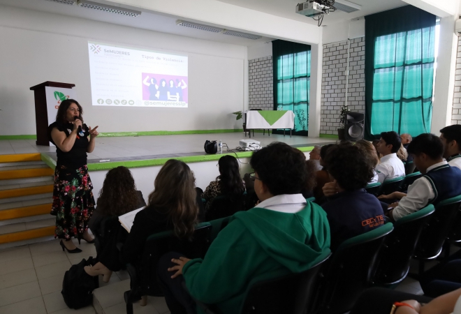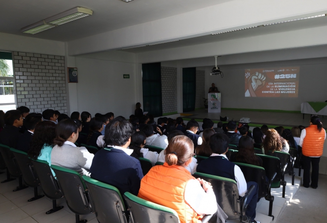 El día de hoy, en las instalaciones del CECyTESLP Plantel III, Nuevo Progreso, se llevó a cabo el curso–taller "#25N Día Internacional de la Eliminación de la Violencia contra las Mujeres”, impartido por la Lic. Laura Adriana González Herrera, Capacitadora de la Secretaría de las Mujeres del Estado (IMES).