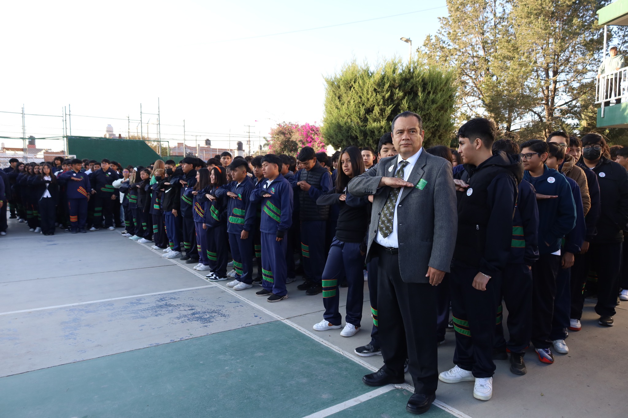 En el Plantel I – Lomas del Mezquital se llevaron a cabo los Honores a la Bandera, ceremonia que fue presidida por nuestro Director General, Mtro. Edgar Alejandro Anaya Escobedo, acompañado por la Directora del plantel y las y los Directores de Área de la Dirección General del CECyTE SLP.