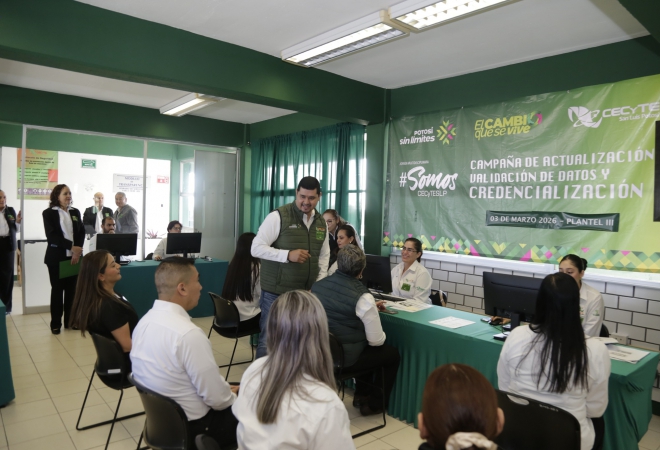 Durante el recorrido, el Maestro destacó que estos procesos forman parte de la modernización del CECyTE, impulsada con el respaldo de nuestro Gobernador del Estado, Ricardo Gallardo Cardona, para brindar una atención más ágil, ordenada y eficiente a toda la comunidad educativa.