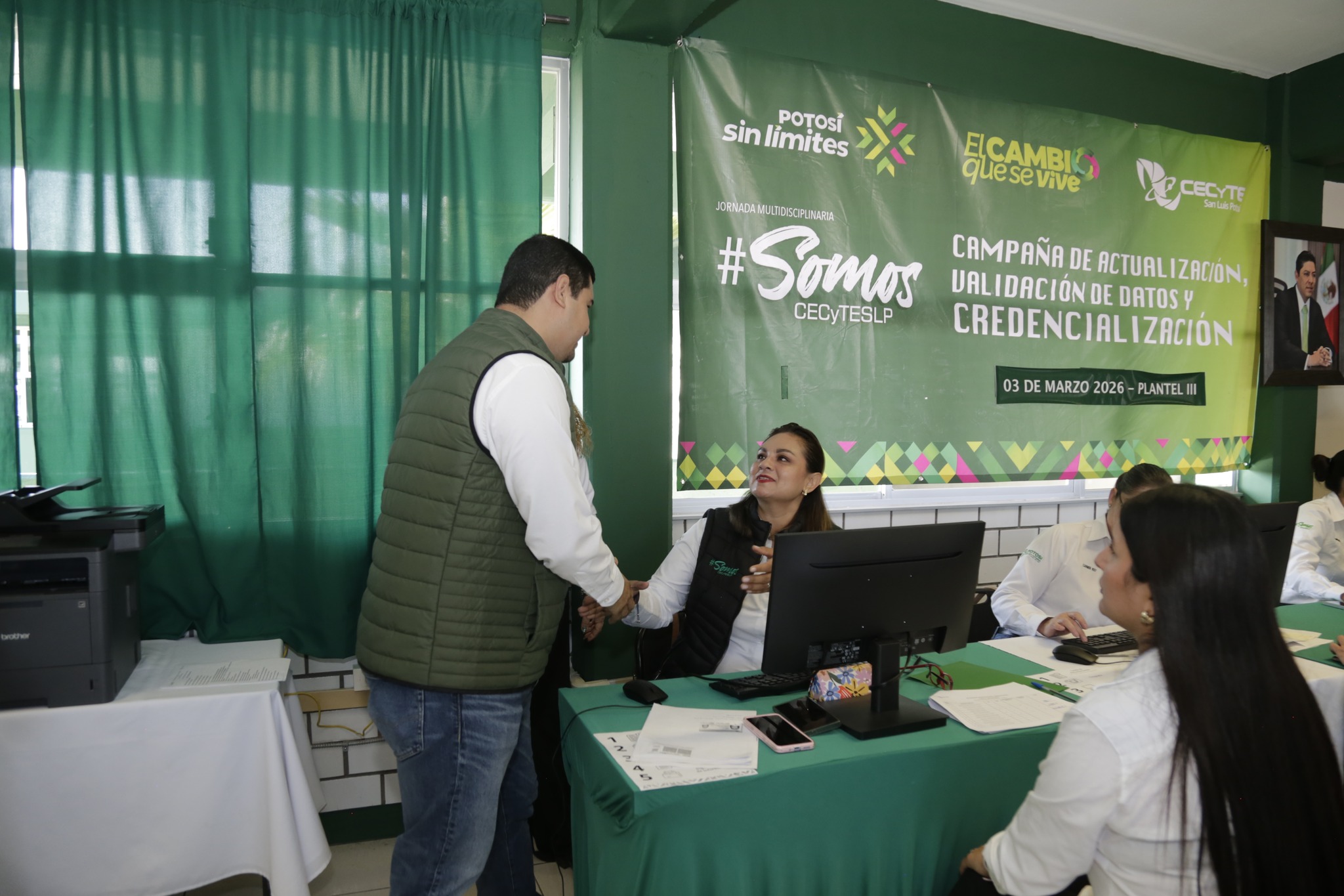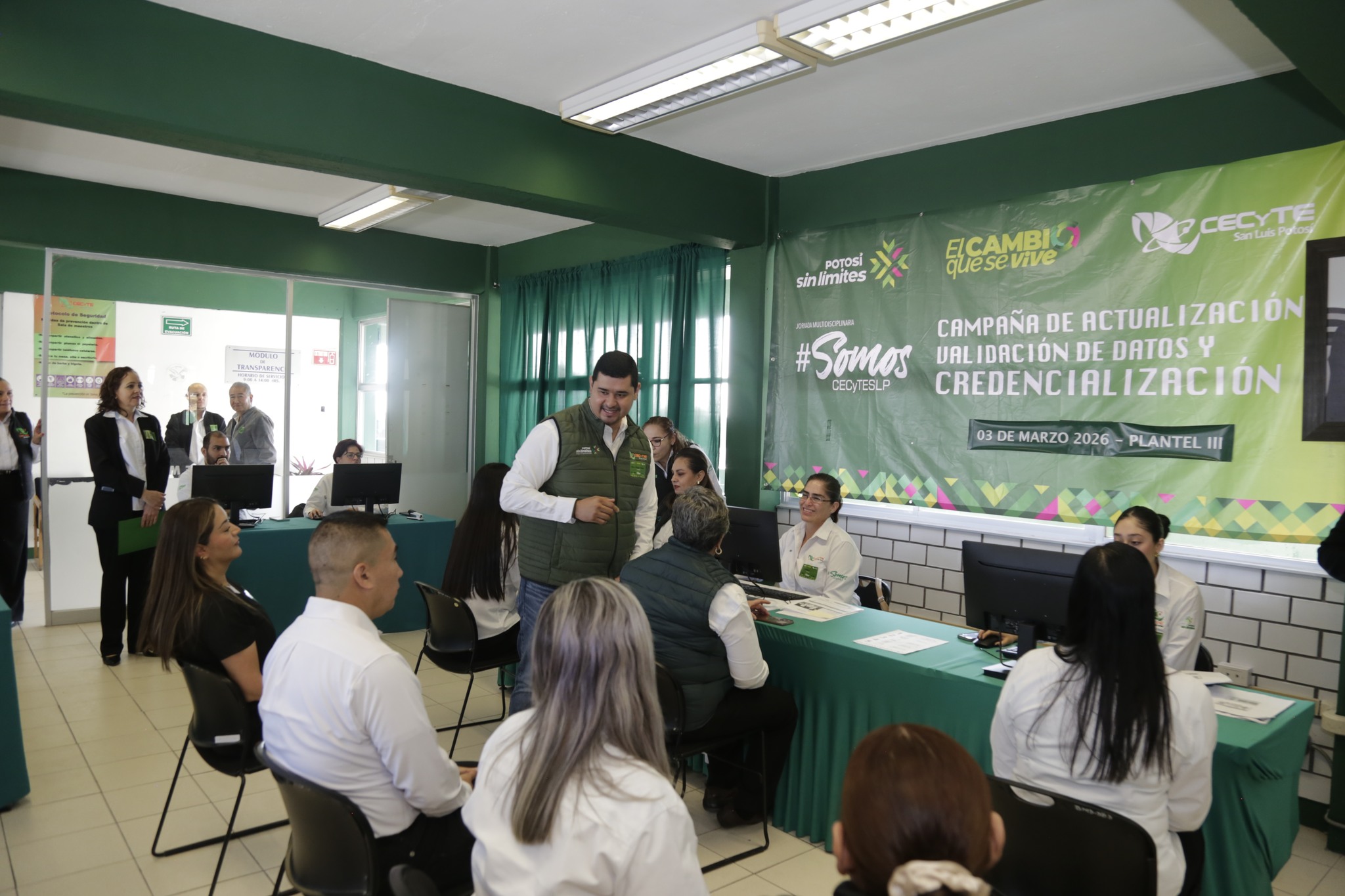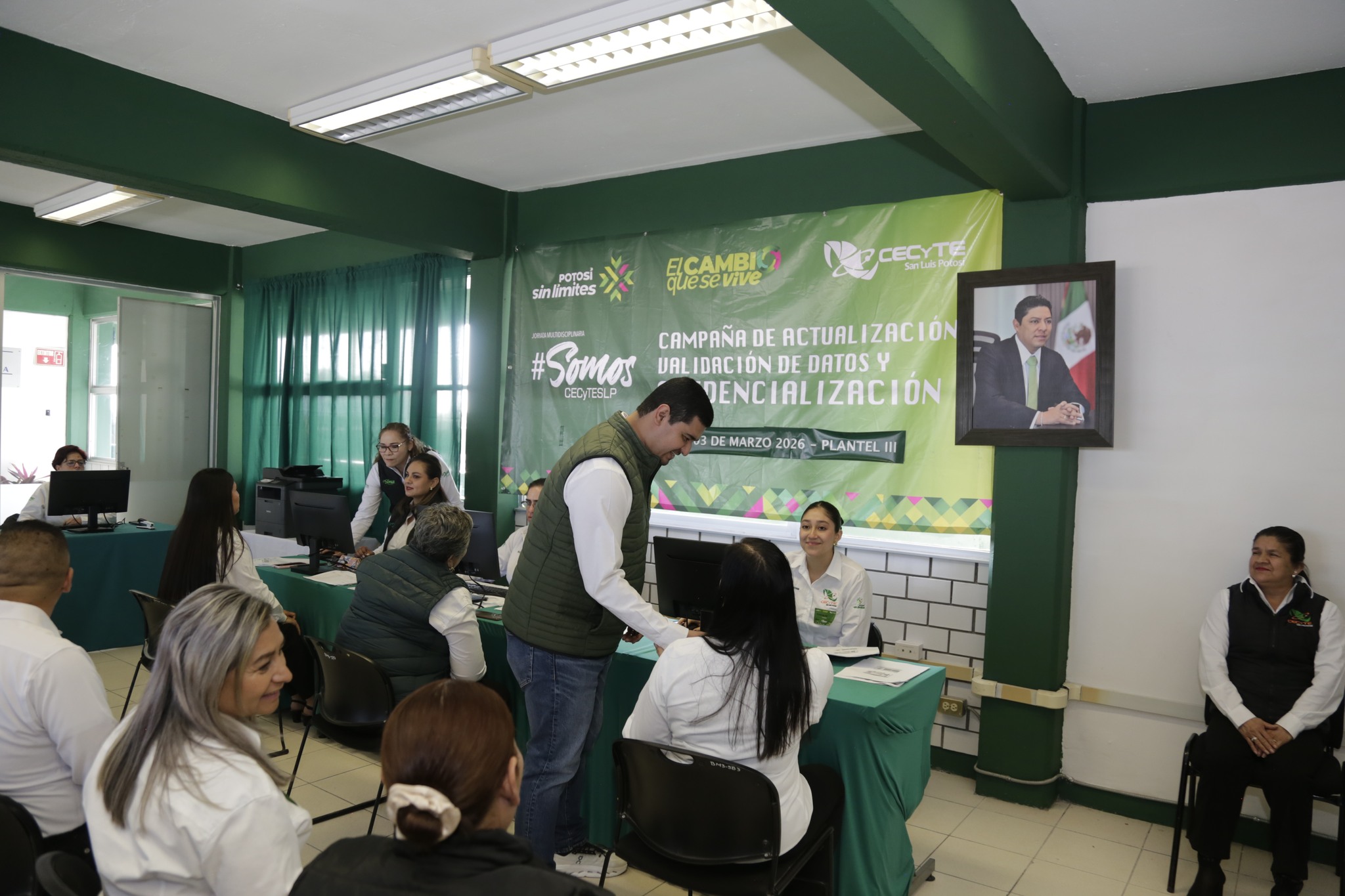 Durante la jornada multidisciplinaria #SomosCeCyTESLP en el Plantel III – Nuevo Progreso, nuestro Director General, Mtro. Edgar Alejandro Anaya Escobedo, visitó en el turno matutino el módulo de actualización, validación de datos y credencialización del CECyTE San Luis Potosí.
