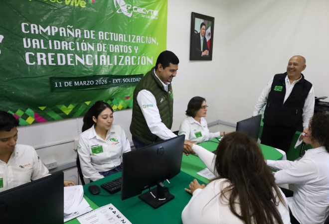 En seguimiento a la jornada multidisciplinaria #SomosCeCyTESLP, en el Plantel X – Extensión Soledad iniciamos el programa de Validación y Actualización de Datos, con la presencia de nuestro Director General, Mtro. Edgar Alejandro Anaya Escobedo.